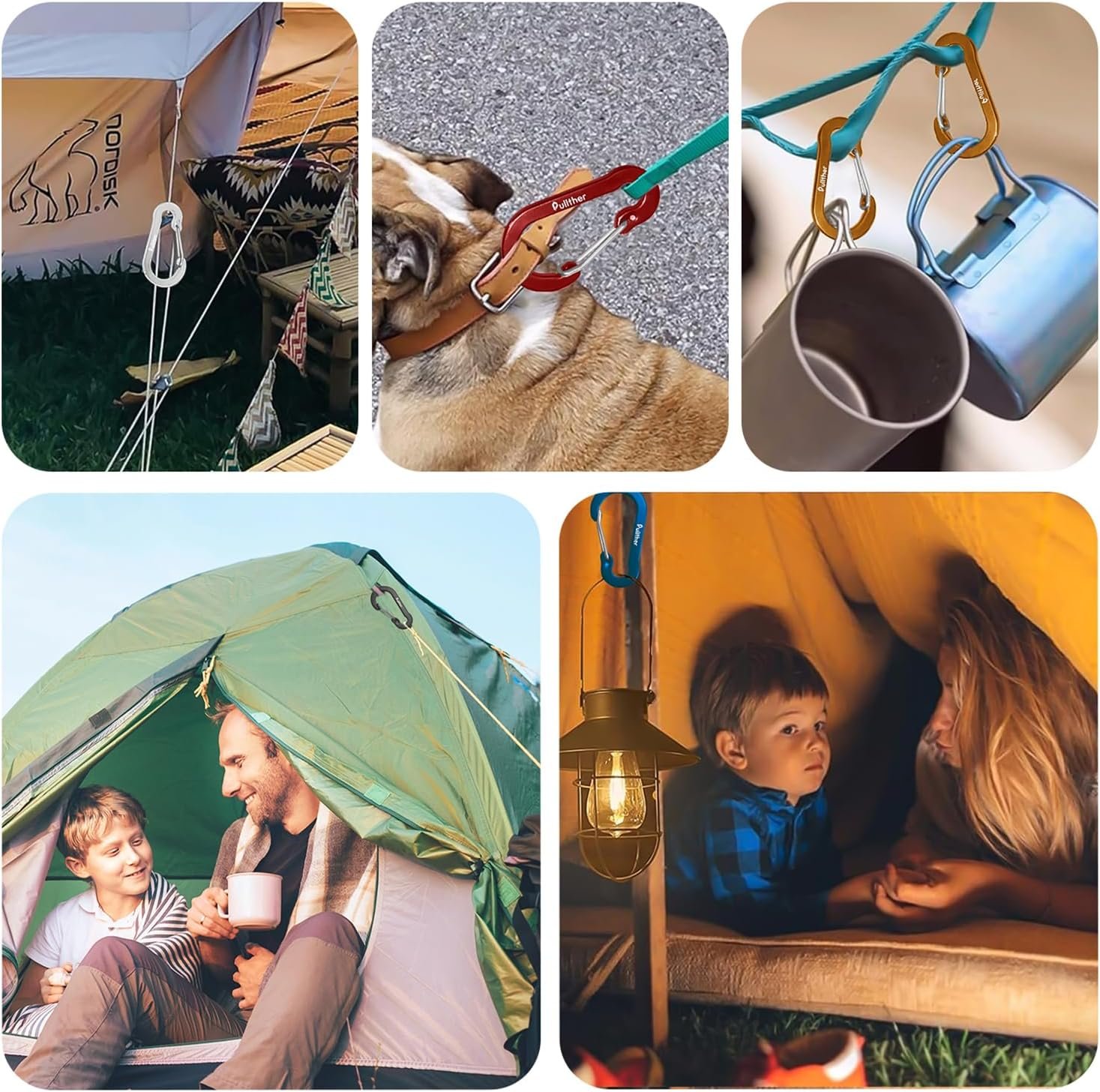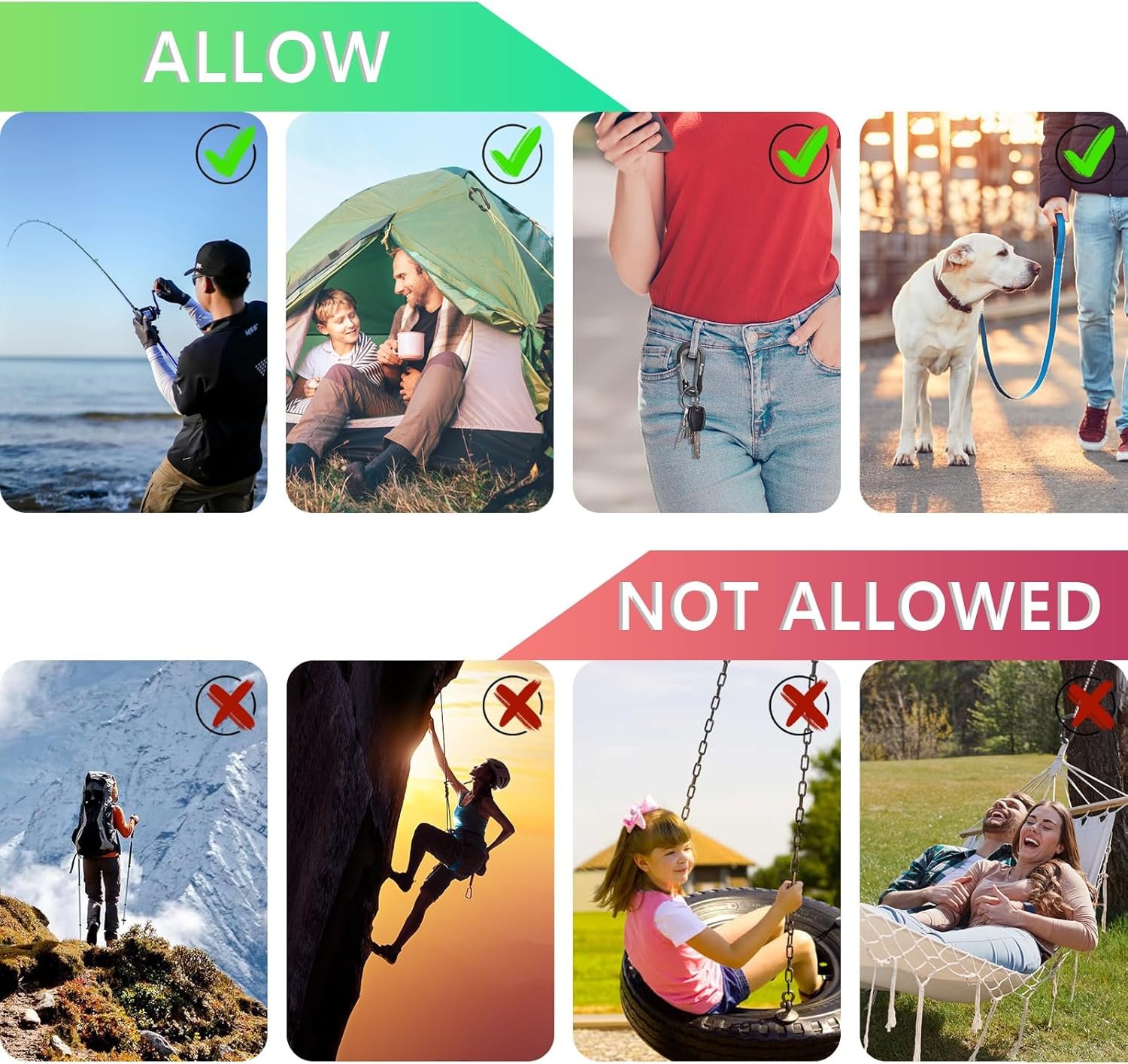 4.MULTIPURPOSE FUNCTION: carabiners Suitable for hammocks, camping, hiking, fishing, traveling and more. It can also be used as a keychain for dogs and cats in daily life. Not suitable for climbing.