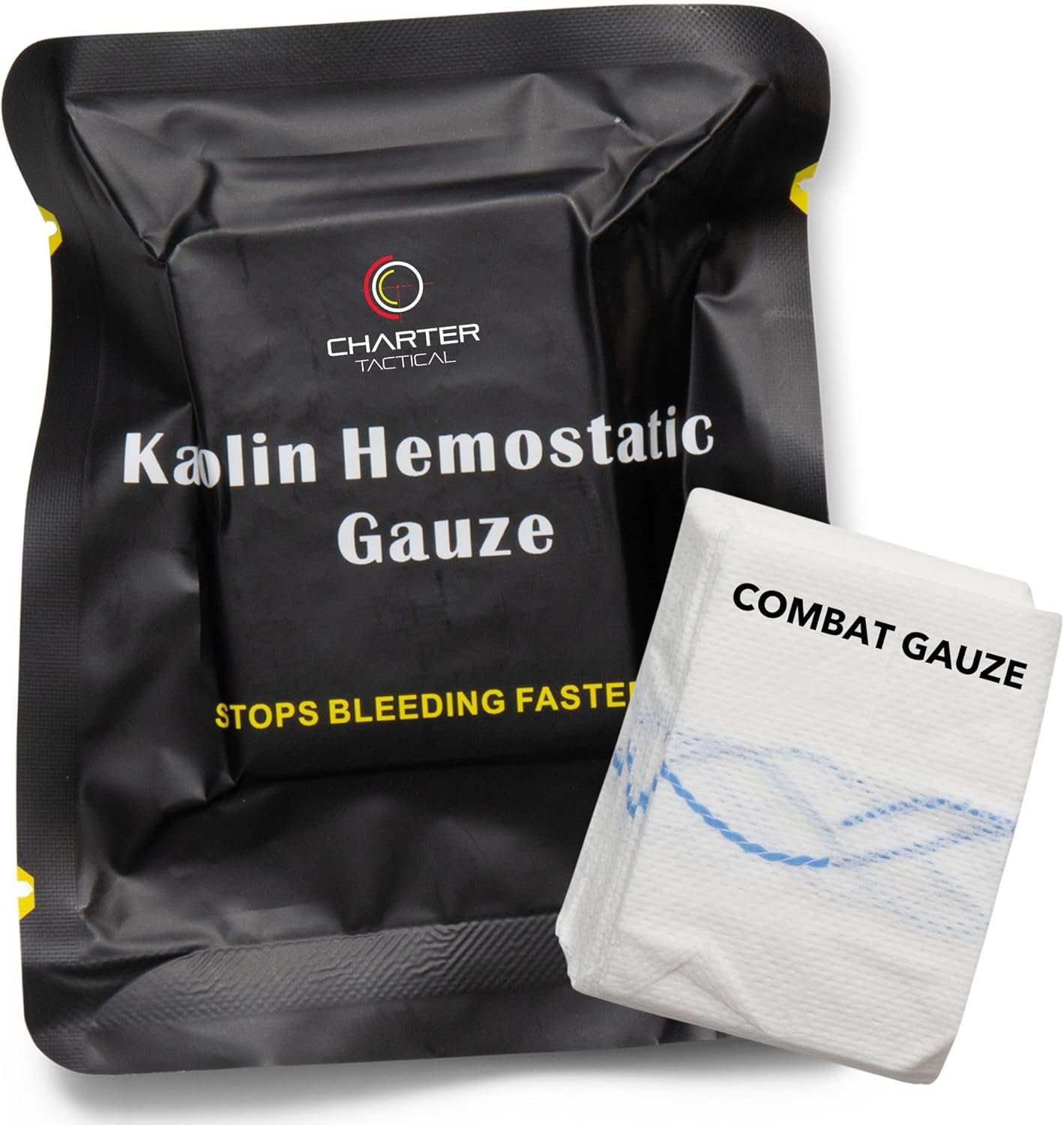 Combat Gauze, Bleed stopping powder and medical first aid supplies. Charter Tactical brand specializes in first aid.