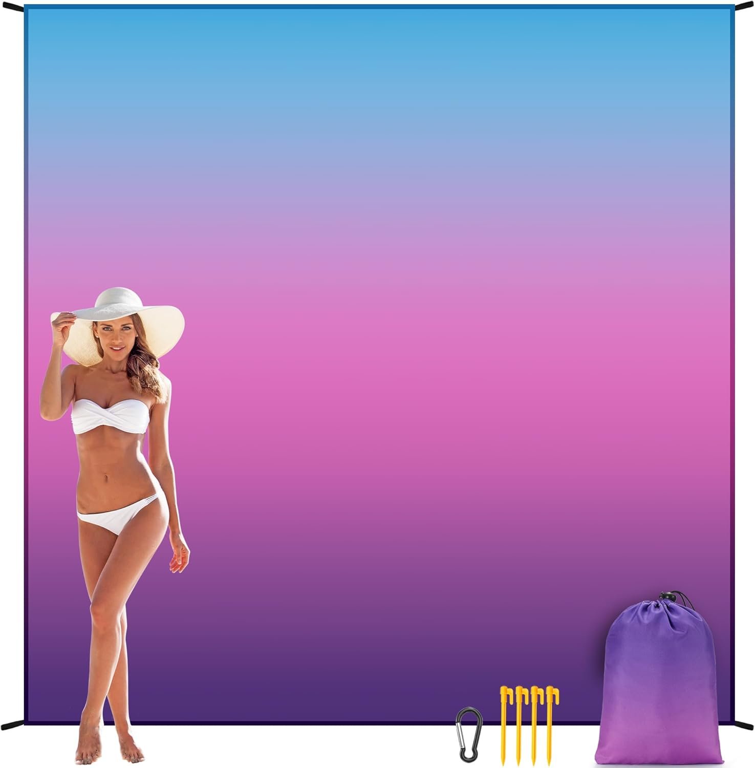 【Outside Beach Blanket】1 * Sand Proof Beach Mat;4 * Durable ABS Anchors Stakes; 1* Carabiner; 1 * Carry Bag.